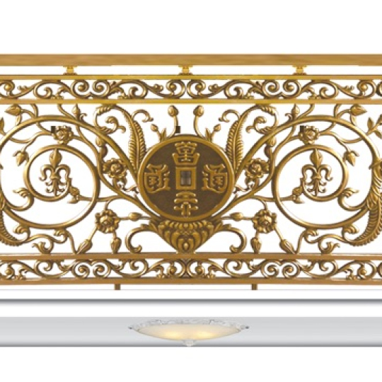 Với gam màu vàng đồng nổi bật và bố cục hoa văn đối xứng hài hòa, lan can giúp tôn lên vẻ sang trọng, làm tăng giá trị thẩm mỹ cho biệt thự, nhà phố, nhà hàng, khách sạn và nhiều công trình cao cấp khác.