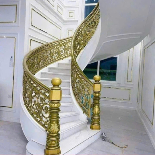 Thiết kế tinh tế: Hoa văn nhôm đúc độc đáo, mềm mại nhưng chắc chắn, tạo không gian cầu thang nổi bật và sang trọng.