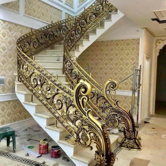 Cầu thang nhôm đúc - 03 với hoa văn tinh xảo, chịu lực tốt, chống oxy hóa, mang đến không gian sang trọng, hiện đại và an toàn tuyệt đối cho biệt thự, nhà phố và công trình cao cấp.