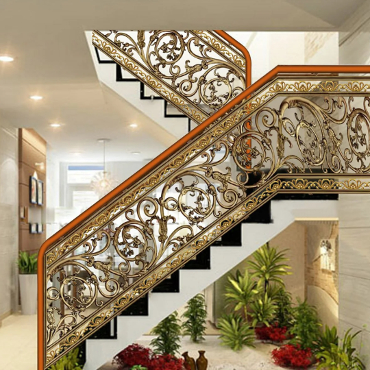 Thiết kế hoa văn tinh xảo: Nhôm đúc 3D với đường nét mềm mại, tạo không gian cầu thang nổi bật và sang trọng.