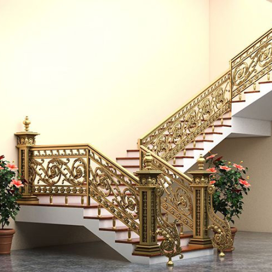Thiết kế tinh xảo: Hoa văn nhôm đúc nổi 3D độc đáo, mềm mại nhưng chắc chắn, tạo điểm nhấn sang trọng cho cầu thang.